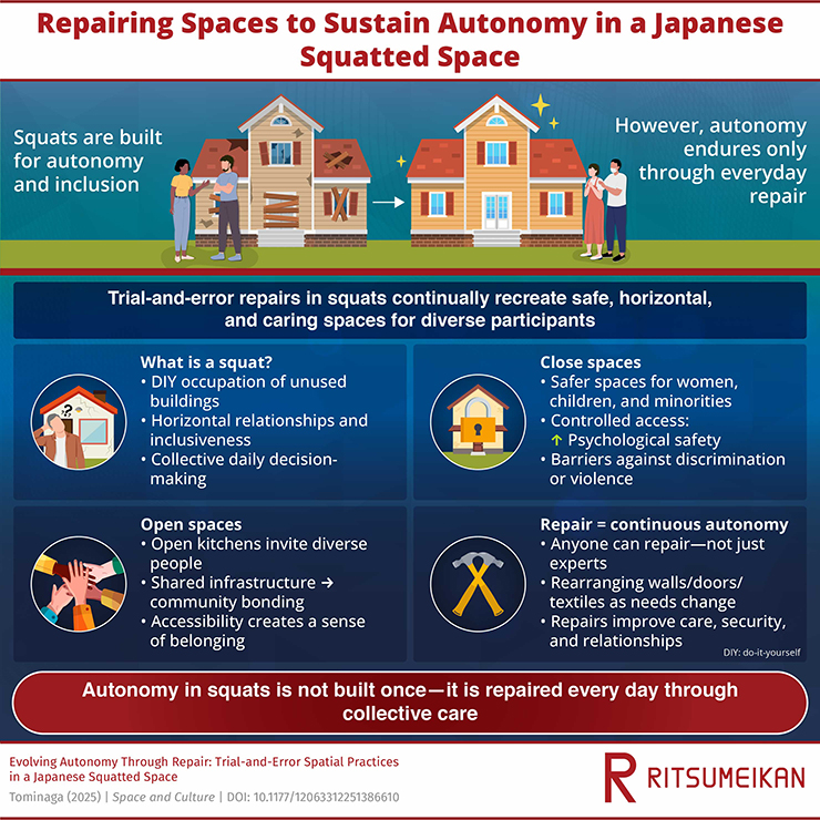 The research was published in the journal Space and Culture on November 20, 2025. It is one of the few academic investigations of squatting in Japan, adding important nuance to a field largely shaped by Western-based contexts. By focusing on hands-on repair and reconfiguration of everyday environments, the paper identifies how autonomy is continually produced, not assumed, within the community.