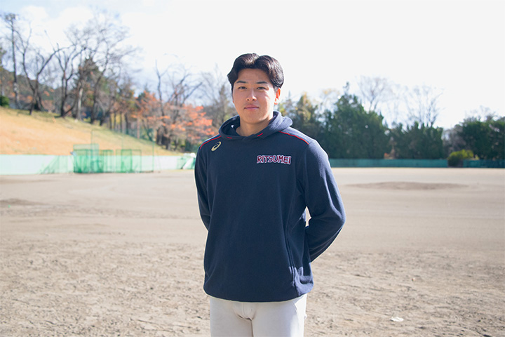 “Next season, the goal of the Ritsumeikan University Baseball Team is to realize our long-held dream of becoming the number one team in Japan. And on a personal level, my ultimate goal is to go pro. I want to perform well next season and develop into the kind of player who can be selected in the first round of the draft,” he states emphatically. Arima approaches baseball with sincerity, and he puts his heart into every pitch when he is on the mound. As he steadily works toward achieving his goals, his journey is one well worth keeping an eye on.