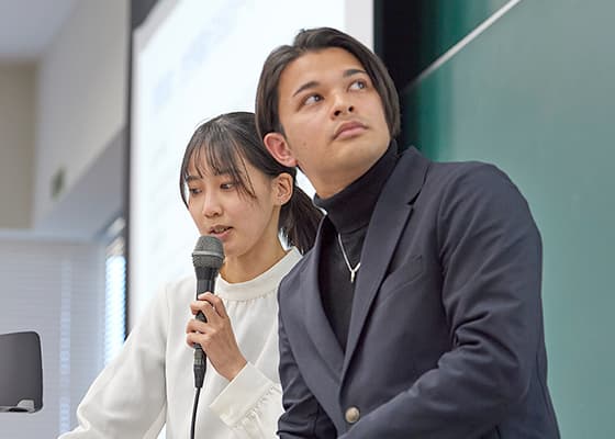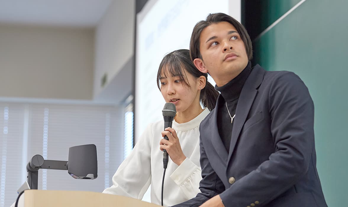 In the "Introduction to Academic Research" classes, first-year students learn the basics of research, such as how to conduct research and research methods, while each student finds a research theme, formulates a research plan, and prepares a research proposal. They then present it at the "Research Proposal Competition”.