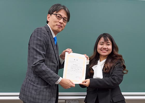 Also, Ms. KAY Thwe Moe, another 4th-year student of the CRPS major presented under the title of “Exploring The Challenges of Women Migrant Care Workers from Myanmar: The Japanese Context” and was awarded the City Mayor's Award!