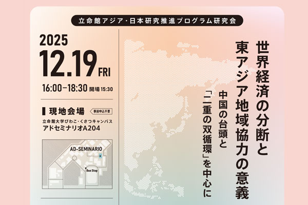 【12/19 Fri】The Workshop on “East Asian Cooperation in the Decoupling of World Economy” (AJI Research Development Program) will be held!