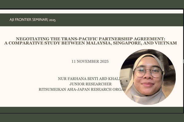 【Report】 The 83rd AJI Frontier Seminar was held! Dr. BINTI ABD KHALID Nur Farhana presented “Negotiating the Trans-Pacific Partnership Agreement: A Comparative Study Between Malaysia, Singapore, and Vietnam.”