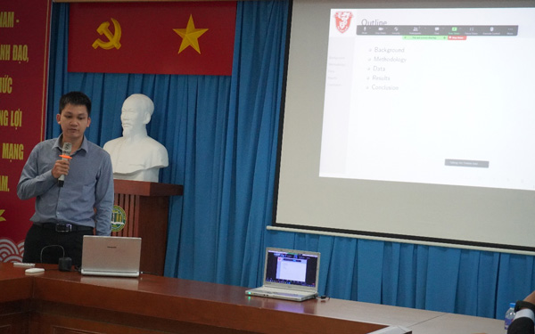 Mr. Mai Dinh Quy, a Lecturer from Nong Lam University – Ho Chi Minh City, Vietnam, discussed his research on "Pig Farmers' Preferences for the Adoption of Good Animal Husbandry Practices in Vietnam: A Choice Experiment."