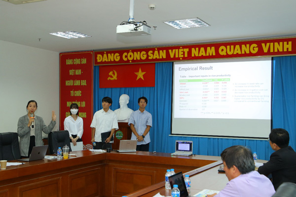 Dr. Ho Thanh Tam, a senior researcher from the Asia-Japan Research Institute, and three undergraduate students from Ritsumeikan University presented a part of the joint research project between the two universities. They discussed the "Benefits of Sustainable Rice Farming and Influential Factors on Rice Farmers' Choice: A Case Study in Long An Province, Vietnam."