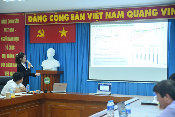 Dr. Tran Thi Huong Sen, a Lecturer from Hue University of Agriculture and Forestry, Vietnam, presented her research on "Ca2+-Sensitive and Non-selective Na+/K+ Channel Activity of a Barley Aquaporin HvPIP2;8 under Saline Condition".