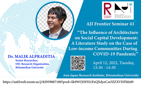 | 43 | 2022.4.12 | Dr. Malik ALPRADITIA | The Influence of Architecture on Social Capital Development: A Literature Study on the Case of Low-income Communities During COVID-19 Pandemic | Read |