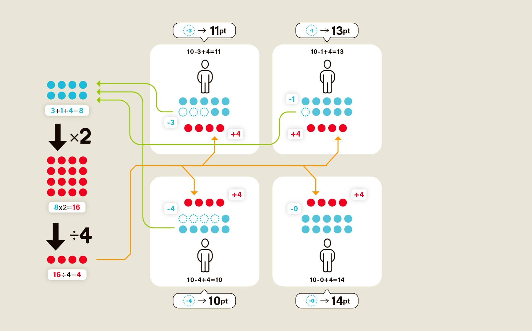 In a joint study, Takeuchi and her colleagues introduced a new twist: participants were assigned a contribution quota, and those who fell short of it were punished. The team tested and compared two different punishment systems. One was an absolute penalty system where everyone who provided fewer points than the quota was penalized. The other was a relative penalty system where only the participant with the least contribution among those who failed to meet the quota was penalized.