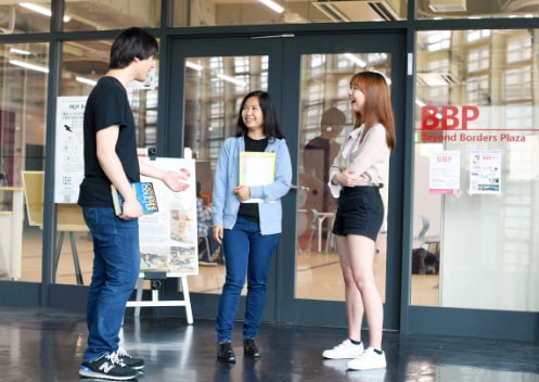 The Beyond Borders Plaza (BBP) is a learning space at each campus for the purpose of language study (including Japanese) and international exchange. Various forms of support are available to students at the BBP, such as foreign language learning materials, study abroad consultations, and international exchange events for Japanese and international students. We encourage SKP students to come by the BBP and see what’s going on.